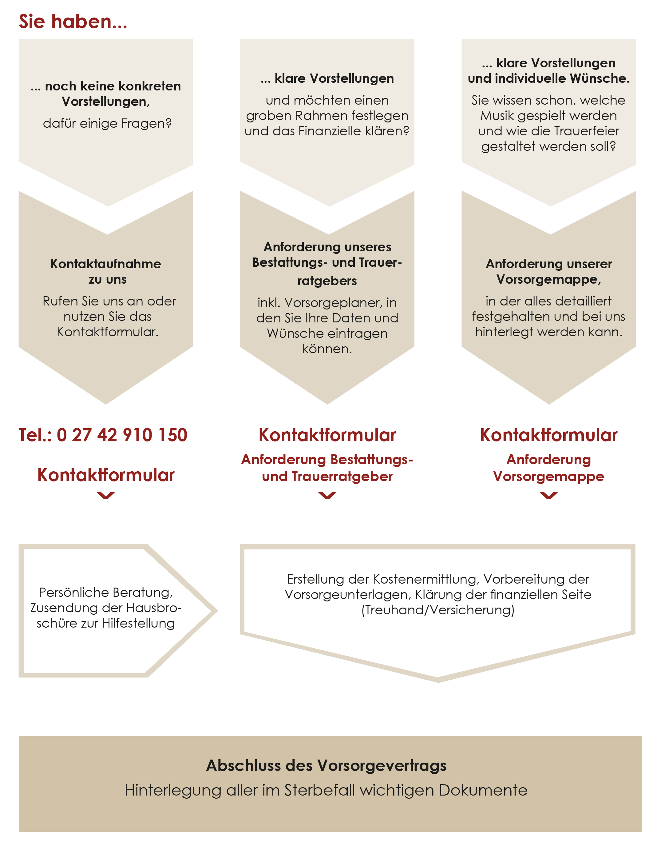 Sie möchten eine Bestattungsvorsorge abschließen, sind sich aber noch unsicher, wie es abläuft oder wo Sie in Ihren Überlegungen gerade stehen?