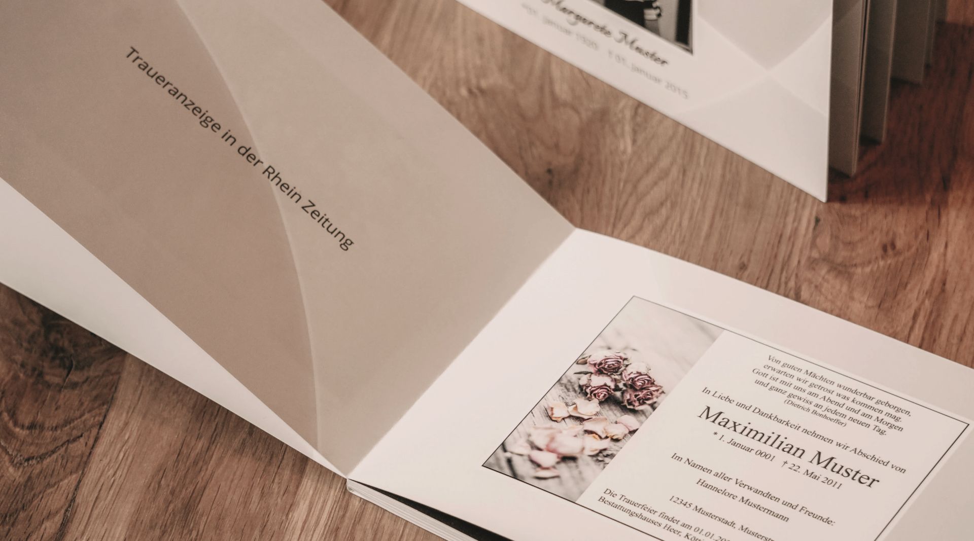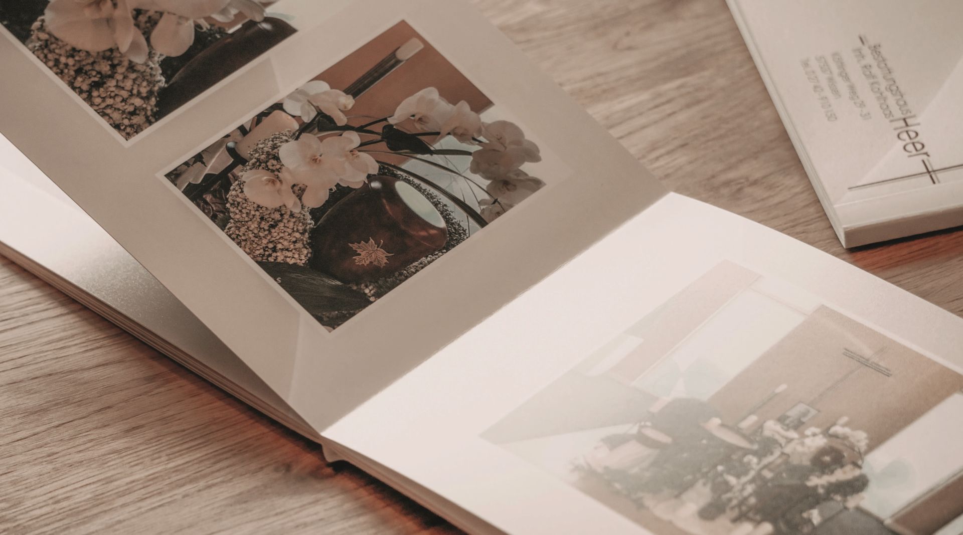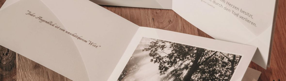 Die Trauerfeier ist ein wichtiger Moment auf dem Weg des Abschiednehmens. Trauernde befinden sich in einer emotionalen Ausnahmesituation. Man bekommt häufig gar nicht wirklich mit, was um einen herum geschieht, geschweige denn, dass man alle Details wahrnimmt. Daher haben wir vor einiger Zeit begonnen, Fotos von der Dekoration zu machen und diese in einem Fotobuch mit den Zeitungsanzeigen zu verewigen.